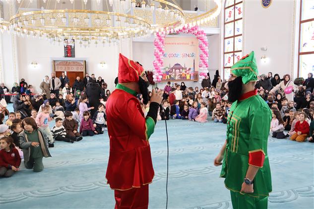 Hacı Kıyasi Şentürk Camii'nde düzenlenen programda Hacivat ile Karagöz, Nasrettin Hoca canlandırması ve kadim oyunlarımız ile çocuklar doyasıya eğlendi.